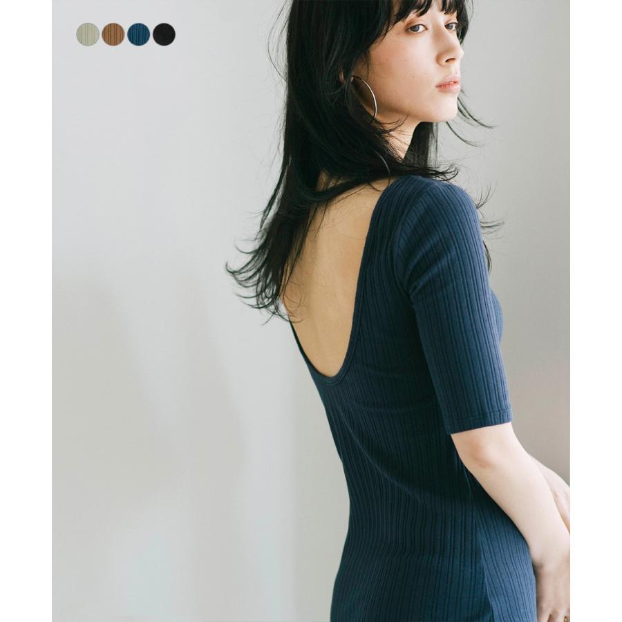 バックオープンノースリニットワンピース E2116 レディースファッション通販 神戸レタス 公式サイト